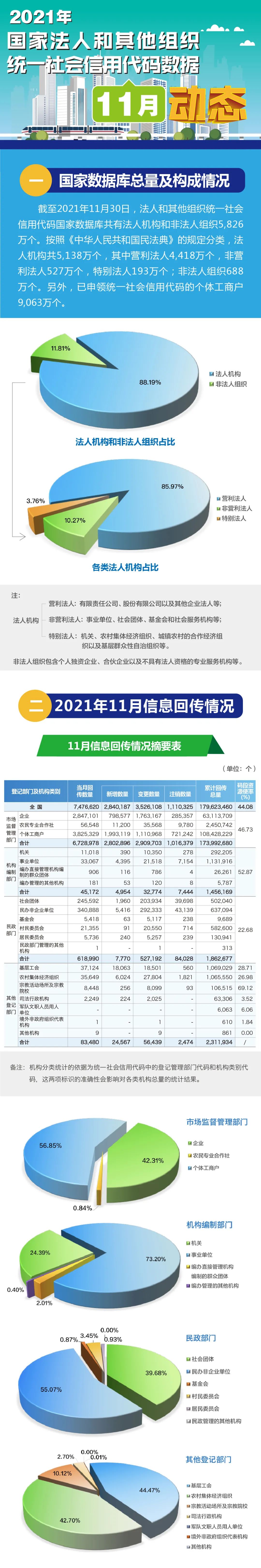 【图解】2021年国家法人和其他组织统一社会信用代码数据11月动态