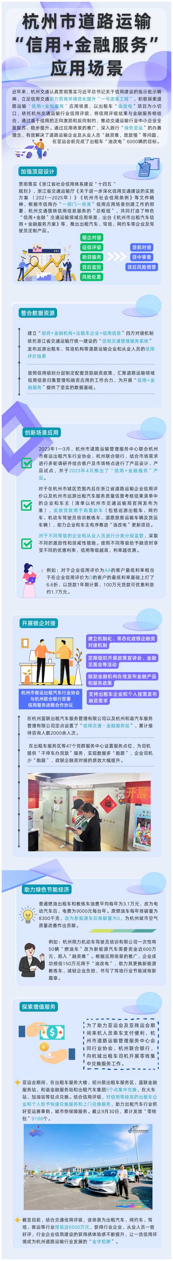 为进一步推进“信用杭州”建设,打造“最讲信用的城市”,市发改委(信用办)积极推动各部门各地区在信用+行业监管、信用+社会治理、信用+社区矫正等方面创新各类信用场景,打造“一部门一场景”“一区县一特色”信用品牌,推广典型应用经验做法,特推出“2023信用应用集锦”系列报道。本期为大家带来的是“道路运输信用+金融服务”(市交通运输局)。一起来看下吧~