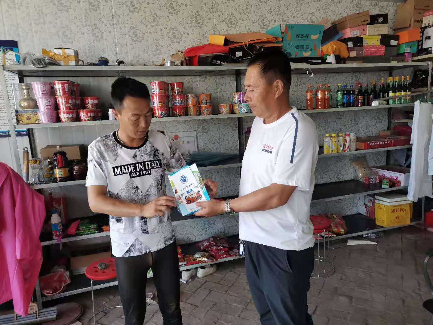 村委干部到农村个体户家中发放诚信经营手册